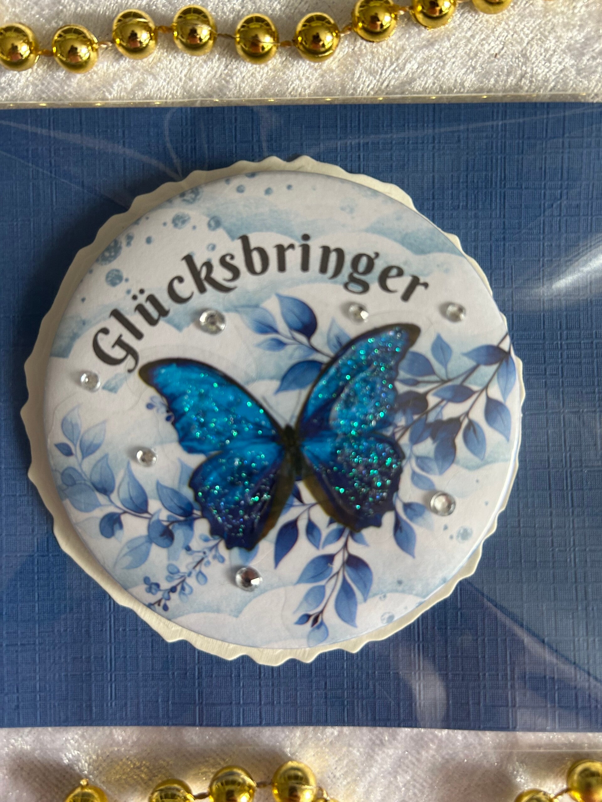 Taschenbutton Motiv Schmetterling, Spruch: Glücksbringer